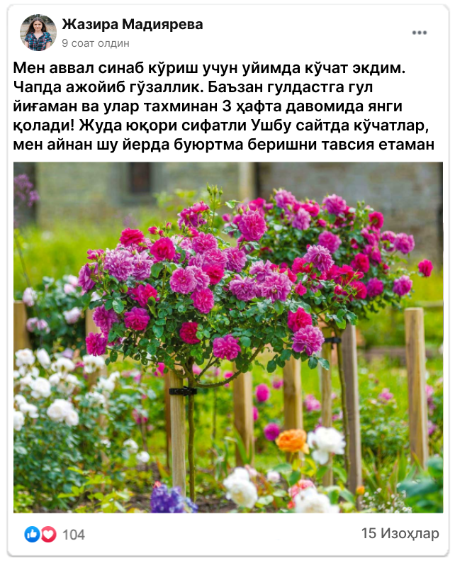 Ўзбекистонда 17000 бахтли боғбонлар (биз шунингдек, флорист компаниялар билан ҳамкорлик қиламиз)